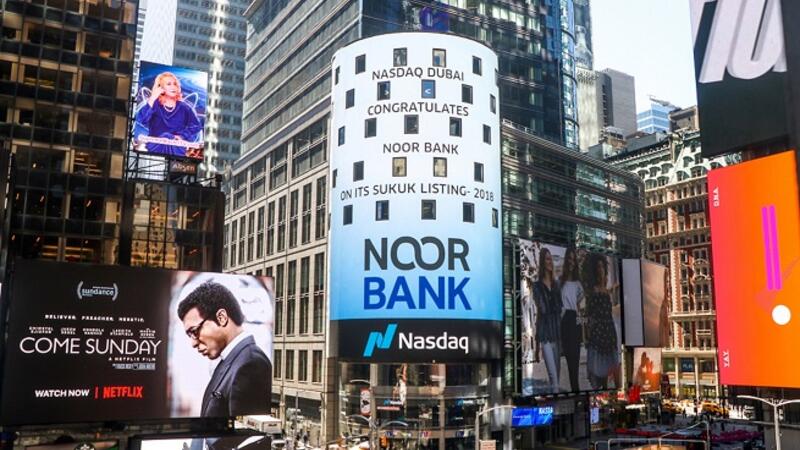 On 16 May, John Iossifidis, Chief Executive Officer, Noor Bank, rang Nasdaq Dubai’s market-opening bell to celebrate the listing of Noor Bank’s US$500 million Sukuk. The listing was acknowledged with a prominent congratulatory message displayed on Nasdaq Tower in Times Square, New York, United States of America.