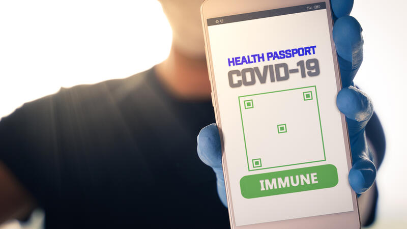The phone software is a digital health pass which can hold a certified COVID-19 test status or show someone has been vaccinated in future in a way designed to satisfy various governments' different regulations.