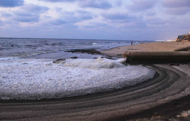 South of Gaza City, wastewater flows into the sea. (@ Wissam Nassar for The Washington Post via Getty Images)