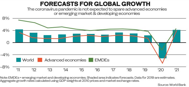 The World Bank said in a recent report: “The pandemic represents the largest economic shock the world economy has witnessed in decades, causing a collapse in global activity. This would be the deepest global recession since World War II, and almost three times as steep as the 2009 global recession.”