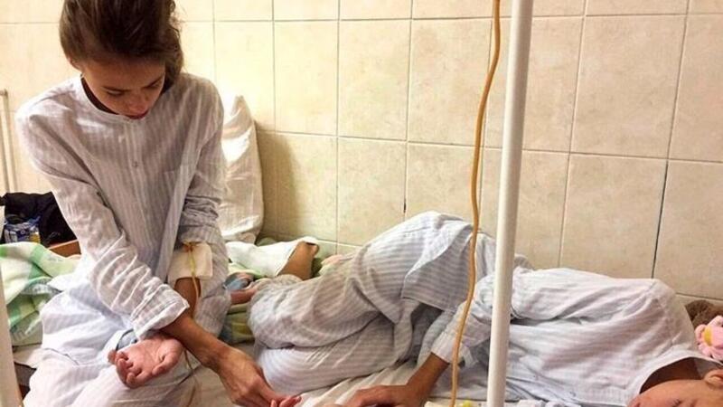 Doctors in Russia are battling to save the lives of 14-year-old models Masha and Dasha Ledeneva who fell critically ill after starving themselves because their modelling school told them to lose weight (Twitter)