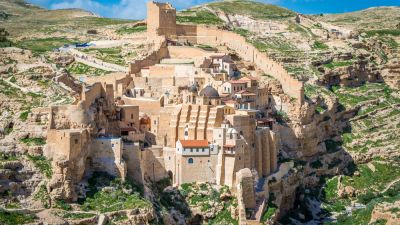 The monastery was built by Mar Saba, or "Saint Sabas" and 5,000 other monks, and is the last of 80 Byzantine-era monasteries built in the area. Home to an ancient church, known as "the church built by God," the complex still adheres to monastic laws that have been in place since its founding. For example, women are not allowed to enter, only lemon and olive trees may be planted, and apples are forbidden.