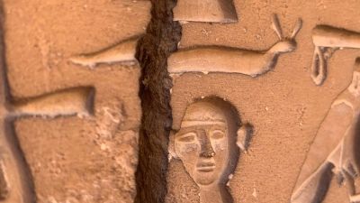 The restoration of the Badi An Est and Psmatik tombs included removing salts that hid the frescoes, and reinforcing the walls and the stones, as well as highlighting the inscriptions colors on walls.