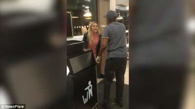 As the angry customer is thrown out she can be heard berating another member of staff for working at the fast food chain before leaving.