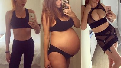 The 32-year-old also took the opportunity to share three photos of herself before, during and after pregnancy, over a three-year period.