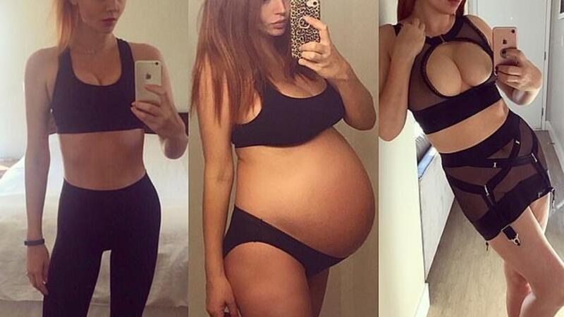The far left of a picture collage saw her at her skinniest, followed by herself during pregnancy over five months ago, and on the right at her current day weight.