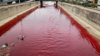 The Beirut River mysteriously turned blood red Wednesday after a stream of unidentified red liquid began pouring from the southern bank of the river in Furn al-Shubbak. The source of the liquid had yet to be determined Wednesday evening, as the river continued to empty the red-colored water into the Mediterranean Sea.