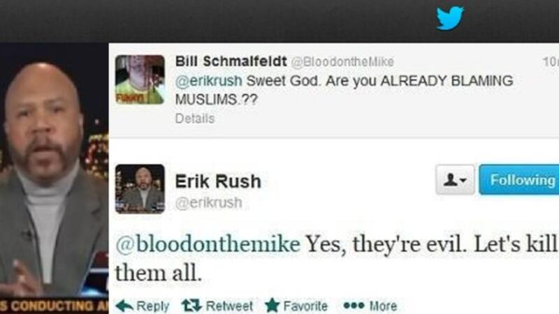 Another Twitter user asked, “Are you ALREADY BLAMING MUSLIMS??” – to which Rush reportedly responded: "Yes, they're evil. Let's kill them all."