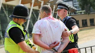 Two police officers were injured and three people were arrested after clashes during the far-right rally.