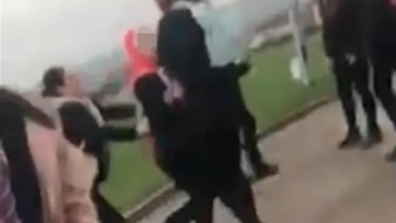 The footage ends there but it is claimed the girl had her headscarf completely torn off.