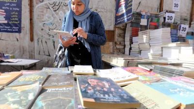 In the heart of the Attaba neighbourhood, Cairo, the two-passage book fair was overcrowded with people of all ages digging for different books.