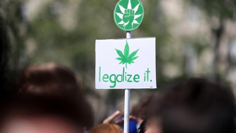 A banner picturing a cannabis leaf and reading “legalize it” during a march for cannabis and marijuana in Paris. (AFP/ File)