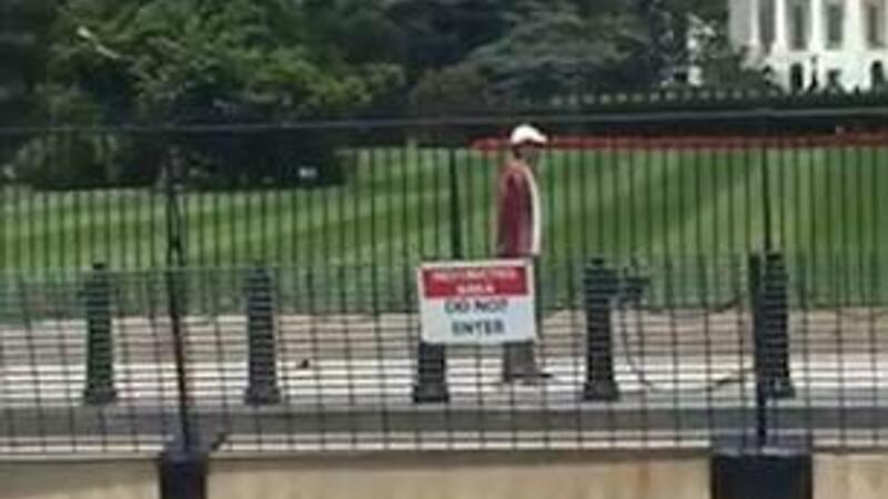 The area separates E Street from the Ellipse on the south side of the White House complex and in video Miner of Danville, California can be seen with his hands out wide.