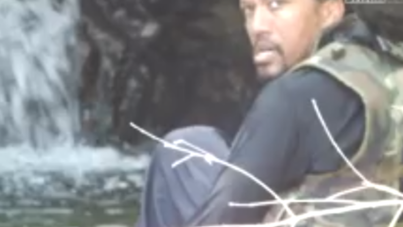 A video of the rapper decked out in jihadist uniform, calling for jihad, praying and playing in a river in Latakia has gone viral.