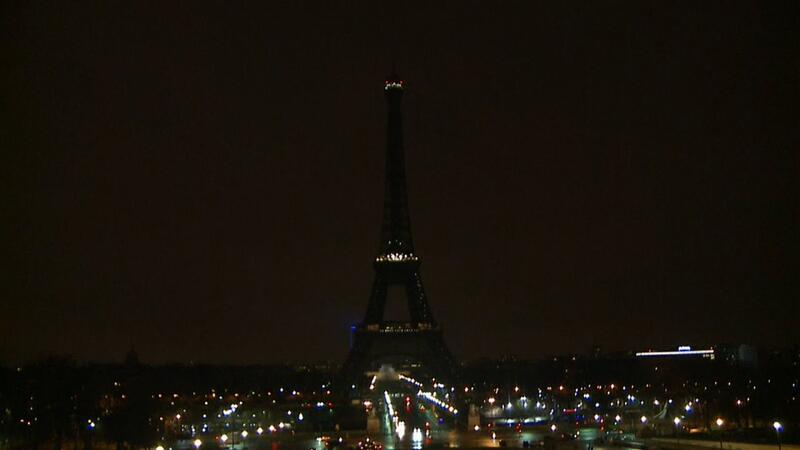The tower's lights were dimmed peviously in memory of those who lost their lives as a result of terrorist attacks in various countries.