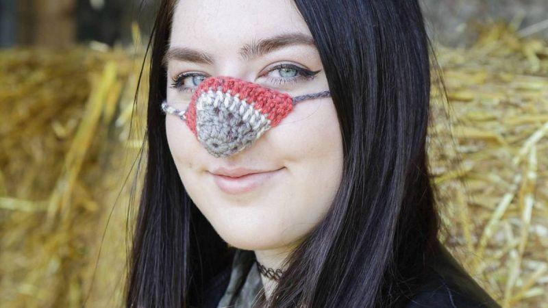 A British woman's winter weather fashion accessory is going viral due to its unusual appearance -- a "nosewarmer" that's like earmuffs for the nose.
