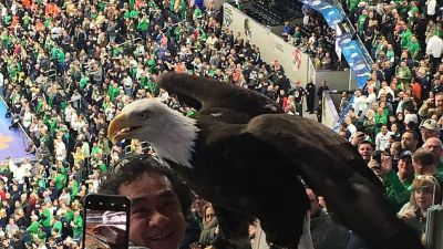 An American football fan experienced one of the longest 20 seconds of his life on Saturday after a bald eagle went rogue as he prepared to watch the Clemson Tigers take on Notre Dame in Arlington, Texas.