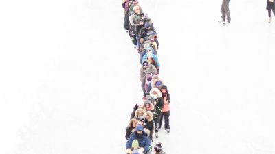 Human Chain Skaters on Frozen River in Canada Set Guinness Record