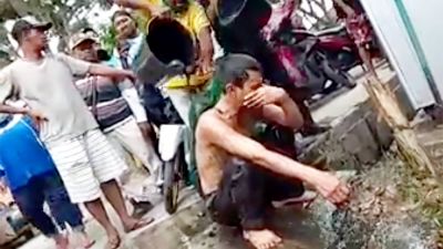 A young Indonesian couple accused of extramarital sex were dragged into the street by a furious mob, who poured buckets of sewage over them as 'punishment'.