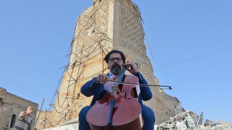 Iraqi Cellist Plays Music Amidst Mosul Ruins
