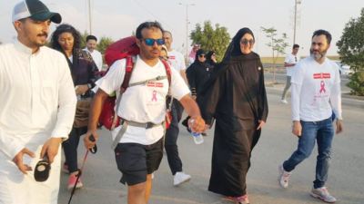 Yasser Al-Hameed arrived in the city of Asfan on Friday, having walked from Makkah as part of the “Walk for Her” initiative, which aims to raise awareness about the early detection of breast cancer.
