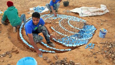 Samir Al Ghafari, one of the Syrian artists residing at the camp, said that the technique utilised in the project “was very unique and useful — because we were able to create mosaics without needing many supplies”.