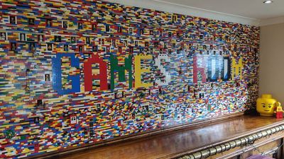 'We had the space above the bar that needed filling. It was just plain. We were just trying to figure out how we could jazz it up and we both love Lego so came up with the idea of building an interactive wall that our friends and family could enjoy along with us.'