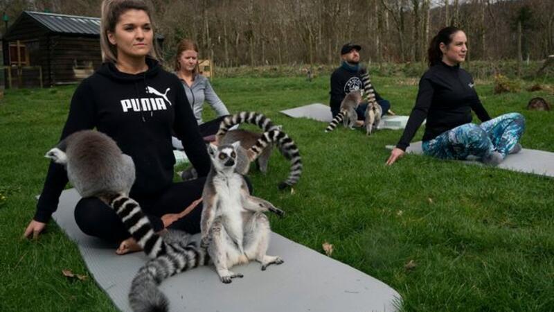 A hotel in England is helping guests unwind with help from some small primates in its latest offering: lemur yoga classes.