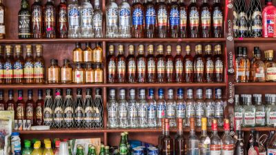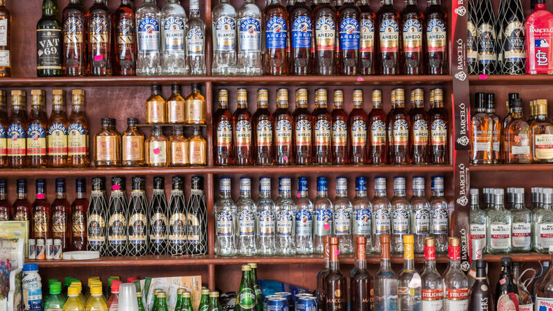 Whilst arranging food for other customers, he saw two empty water bottles. He took them and refiled them with alcohol from an open flask.