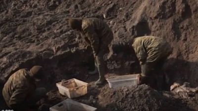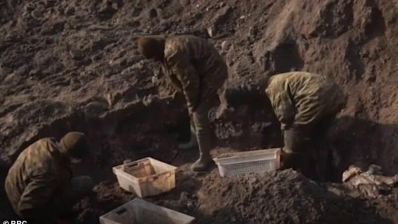 ‘There are clear bullet holes in the skulls,’ Dmitry Kaminsky, the military team leader, told the BBC.