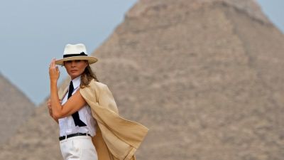 Melania Trumping Across Egypt's Giza Looks Like Colonel Sanders in a Necktie