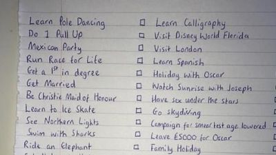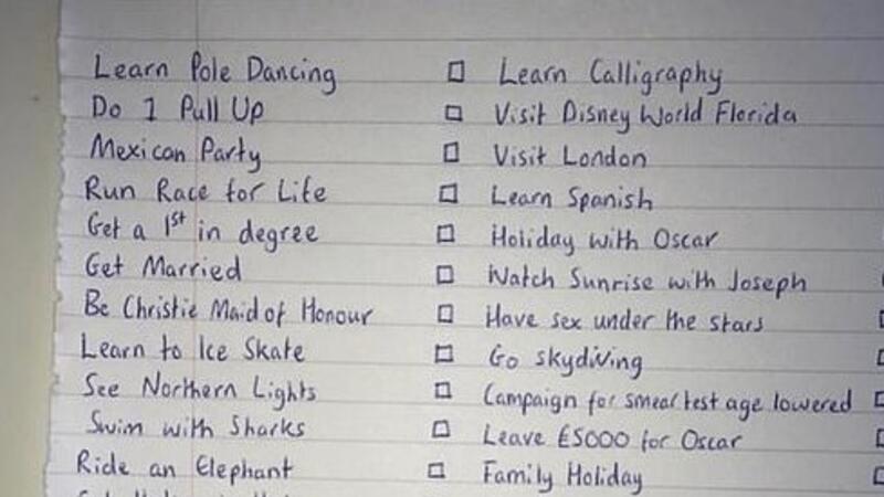 And now the aspiring doctor wants to grasp every possible moment life has to offer and has shared a bucket list of things she wants to do such as being her sister's maid of honour and taking her son Oscar on holiday.