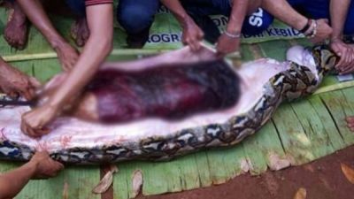 'People took the snake into the village and started splitting the snake. The suspicions were true and there was a body in tact inside the snake. Unfortunately the victim was lifeless.''