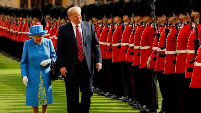 Trump’s trip was not a state visit and so only the Queen greeted the president and his wife Melania.