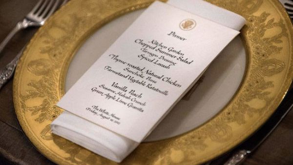 For the main course, the White House kept it simple and offered a halibut fillet with roasted cauliflower Swiss chard and  served with crushed sumak, topped with mint butter.