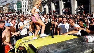 The vehicle was smashed up when drunked fans went wild on Borough High Street, near London Bridge station, after England's 2-0 football World Cup quarter final win against Sweden in Russia on Saturday July 7.