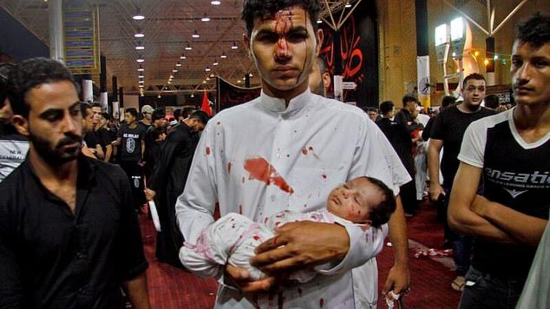 The gory ceremonies, which sees males of all ages cut themselves across the scalp, or whip themselves with blades attached to chains, are meant to commemorate Imam Hussein's violent end.