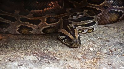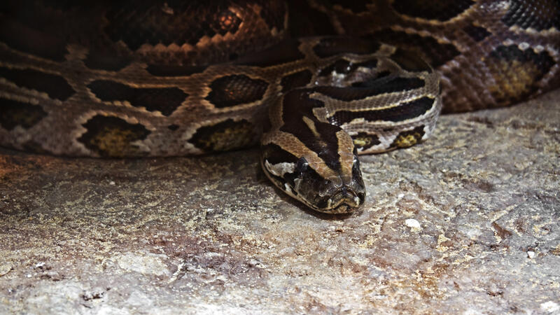'When the snake wants to eat the people they will bite quickly and lock them in very quickly, but this one is older and has been tamed.'