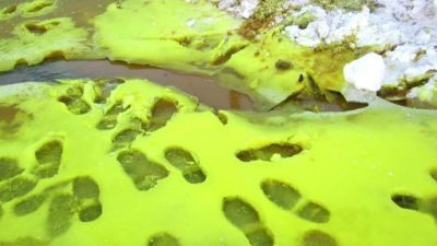 Residents in Pervouralsk were horrified when chemicals spilling from a chrome factory turned white snow to an acid green colour.