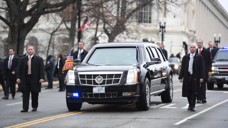 Among the motorcade is the President's own communications antenna - a mobile cellphone tower strapped to the top of a car in his motorcade.