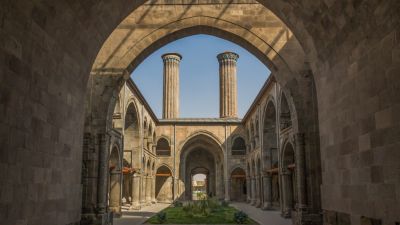 Hatuniye, one of the double minaret Turkish madrasahs (religious schools), which is included in the tentative list of UNESCO’s world heritage, lures tourists for its symbolic feature.