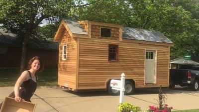 Meghan Panu first reported the small home on wheels missing in an Instagram post on Saturday after she spent several years constructing the home on a 20-foot-long and 8-foot-wide trailer as part of her senior thesis at Webster University.