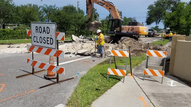 The Oviedo Historical Society said crews repairing the hole that opened on Sunday in State Road 434 in Seminole County started digging at the site and discovered the previously unknown road and structure.