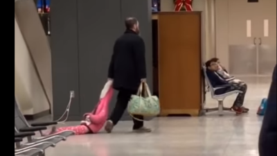 The father, who is wearing dark clothes, is oblivious of being captured on camera as he holds a duffle bag in one hand and the girl's hood in his other hand. While the girl's hands are clasped in her lap as she's dragged across the airport's floor. According to Daily Mail reports, it is not clear whether the girl was awake or asleep when she was being dragged however she does not seem to make any movements, as seen in the video.