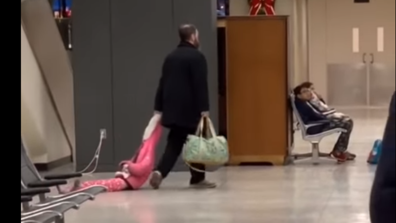 A father dragged his daughter by her hood at Washington Dulles International Airport in Virginia and the 'unusual' video has now gone viral. The incident occurred on New Year's Day when the man was spotted calmly towing his daughter by her hood through an airport's baggage claim.