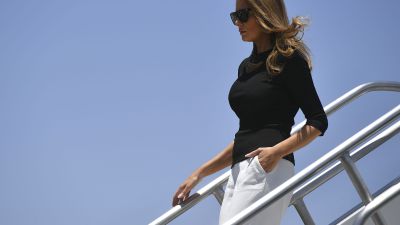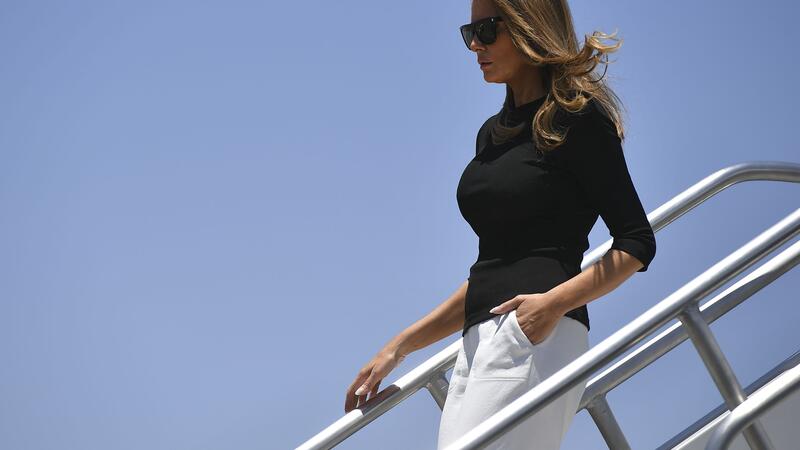 Melania Trump was traveling to an event at Thomas Jefferson University Hospital in Philadelphia. She and Health and Human Services Secretary Alex Azar planned to meet with families affected by neonatal abstinence syndrome, caused by a baby's withdrawal from drugs to which it was exposed while in the womb.