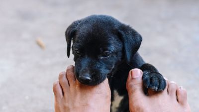 She had a number of puppies which she would allow to lick her skin, including her toes.