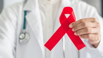 Aids red ribbon in doctor's hand for World aids day and national HIV/AIDS and aging awareness month concept. (Shutterstock/ File Photo)