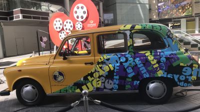 Part of the promotion for the festival's drive-in cinemas in the New Abdali area. Photo by Ruba Hattar