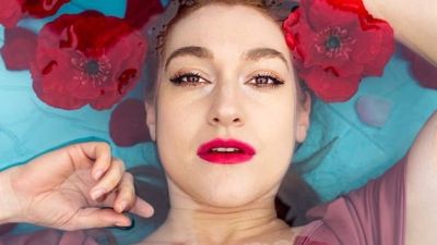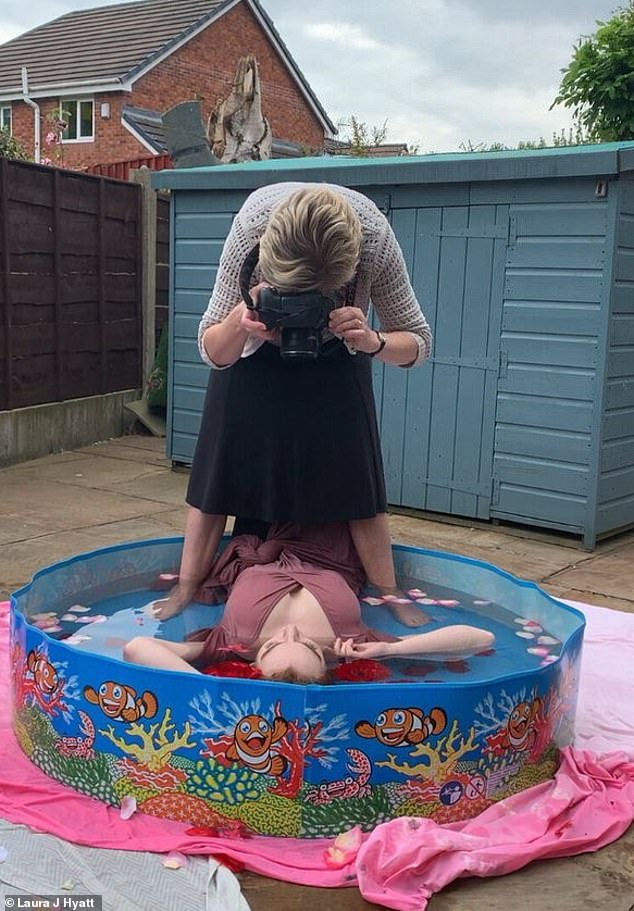 But instead of taking the pictures in the sea, or even a swimming pool Laura bought a children's swimming pool, some flowers and got someone to take some pictures of her from above.
